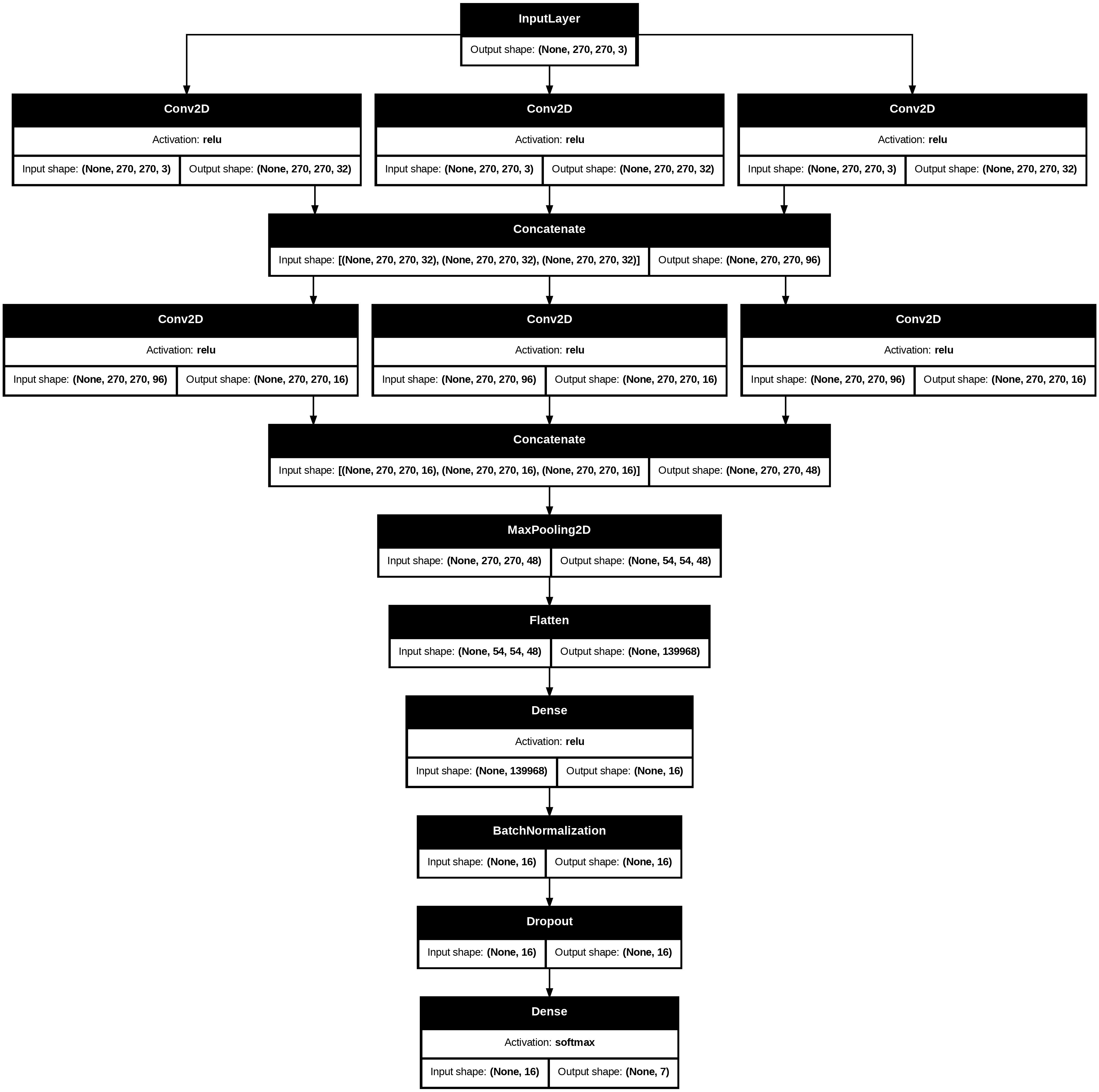 The GoogLeNet architecture employs so called ”Inception blocks”, by which the network subverts the traditional sequential feed-forward nature of neural networks. In the Inception blocks, a variety of kernels of different sizes can be used for convolution, and their results (with proper padding) concatenated together with the goal of approximat- ing the optimal kernel size. Occasional max pooling layers with stride 2 are used to halve the size of the layers and maintain a reasonable parameter count. Another element included by the team at Google is including loss at points in the middle network into the overall loss. This is done to mitigate vanishing gradients. Since the network fit for this project is much smaller than GoogLeNet, this loss checkpointing technique is not incorporated. The structure for each of the networks is visualized below.